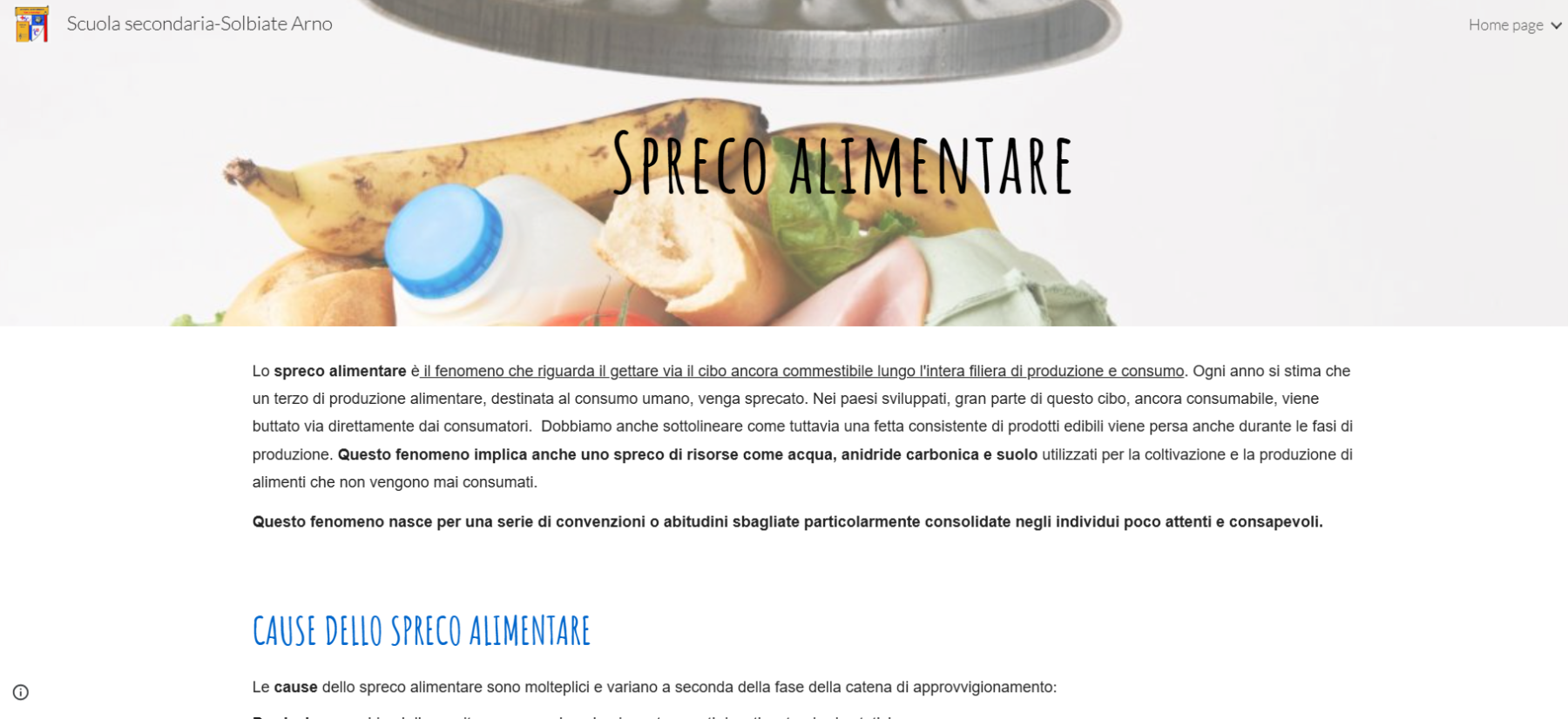 La 2C della scuola secondaria ha realizzato un sito per promuovere il cibo salutare e contro lo spreco alimentare