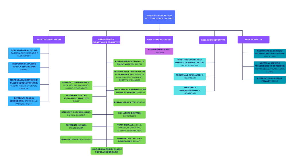 Collaboratori del dirigente scolastico: Elena Riotti, Carmela Tremamondo (scuola primaria), Luisa Saiano (scuola secondaria)